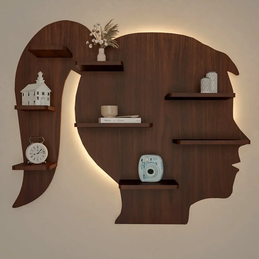 View full detailsGirl Backlit Wood Wall Shelf / Book Shelf / Night Light, Walnut Finish