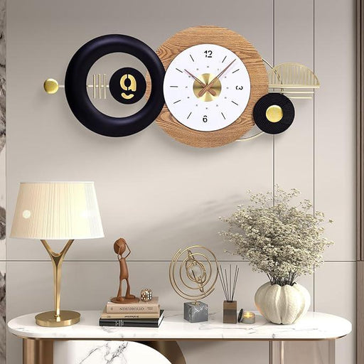 The Modern Orb Metal Art Clock is an impressive combination of metal craftsmanship, natural wooden surfaces and geometric lines and flows and it tu...