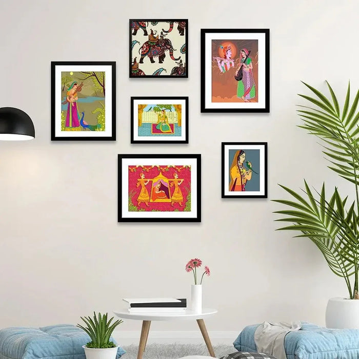 Madhubani Art Collage Picture Wall Frame Set of 6